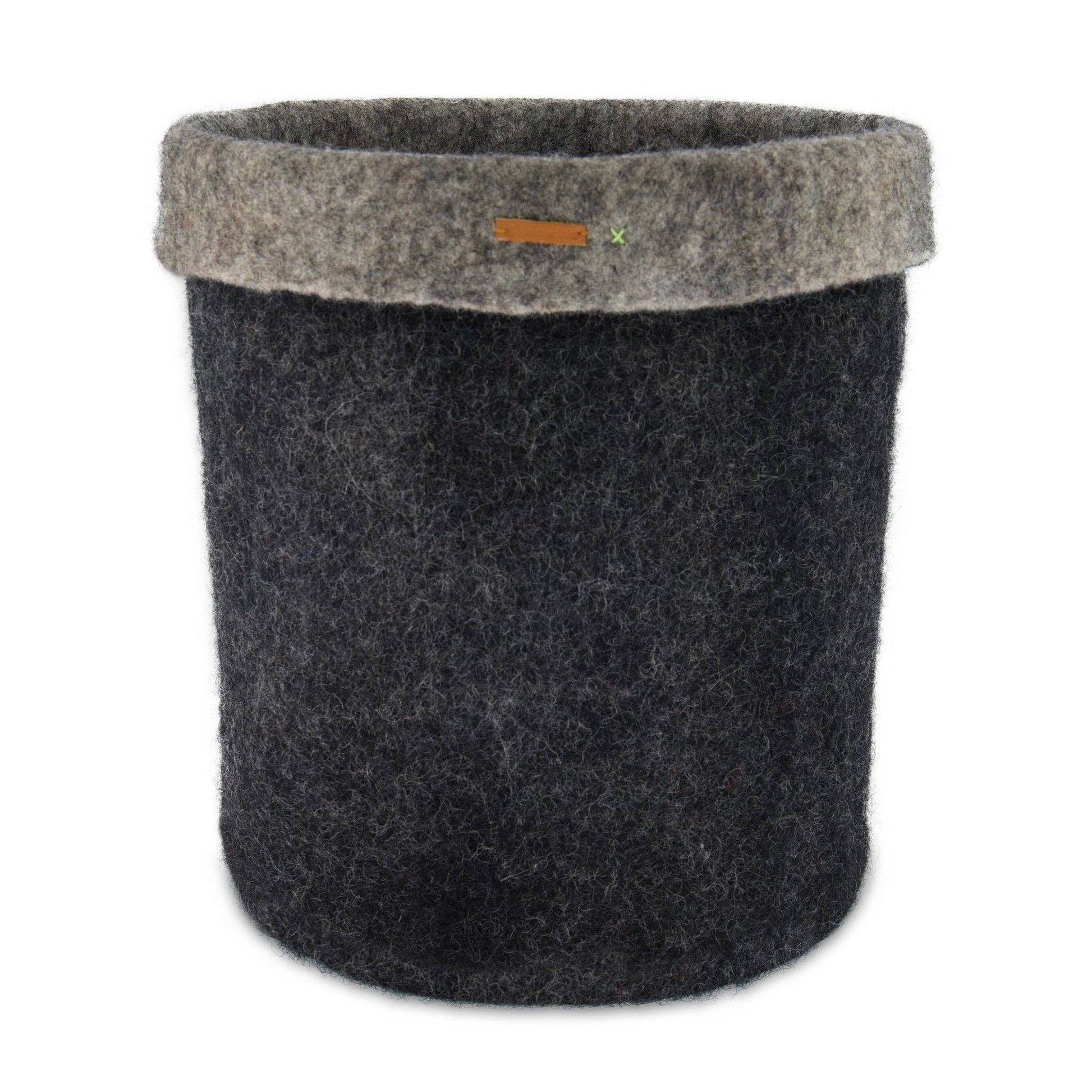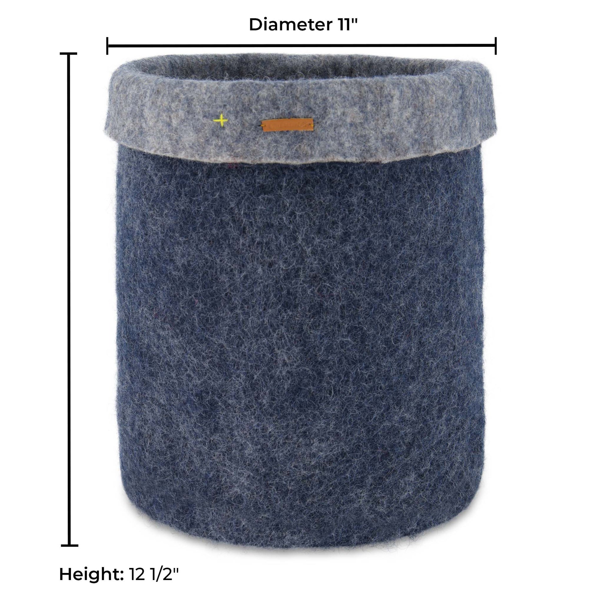 All of the baskets are hand felted in two colors. Size: Height, 12 1/2"; diameter 11". Like all of our other products the baskets are handmade in our facility in Kathmandu, Nepal and signed by the artisan who made it.