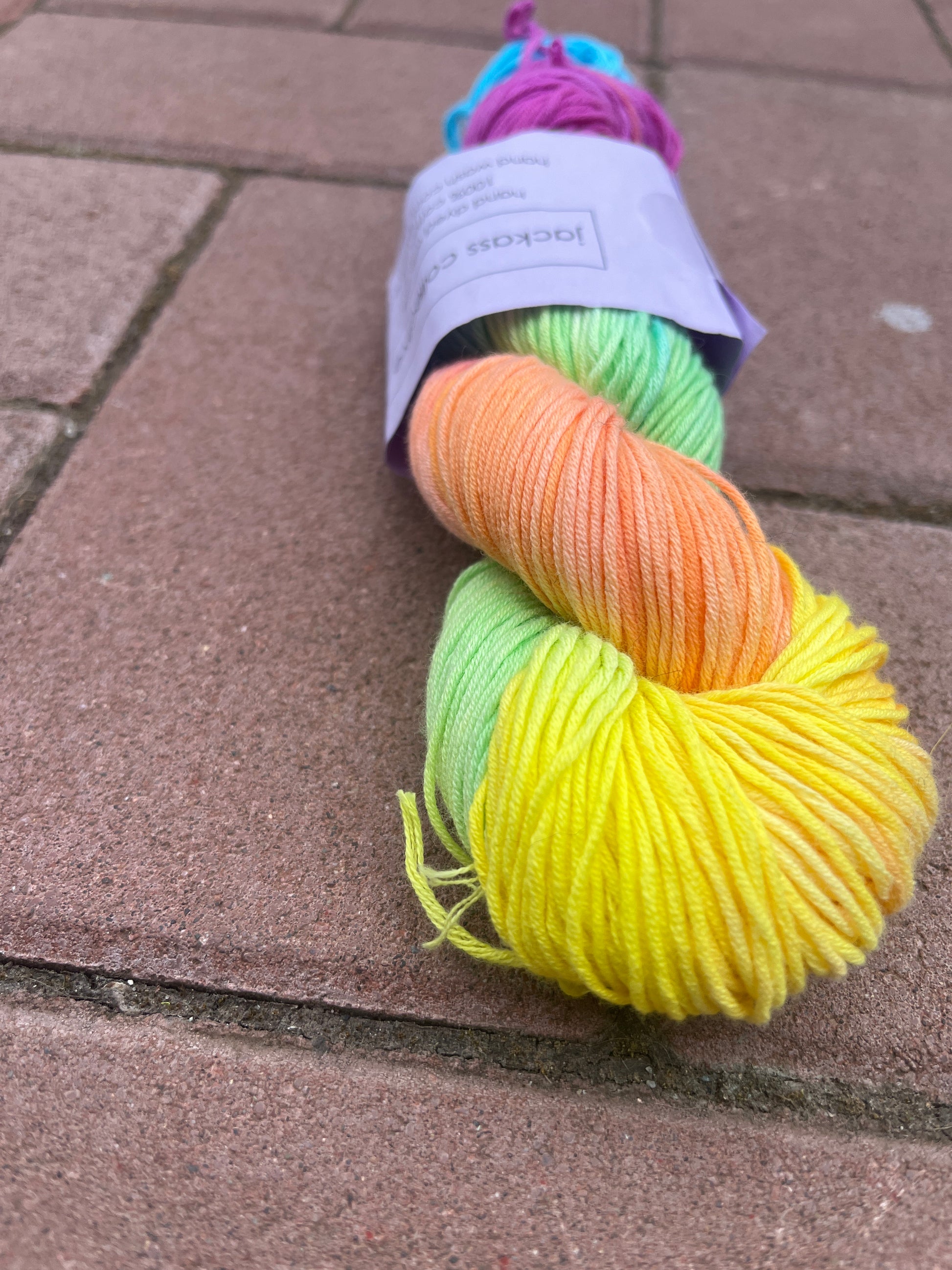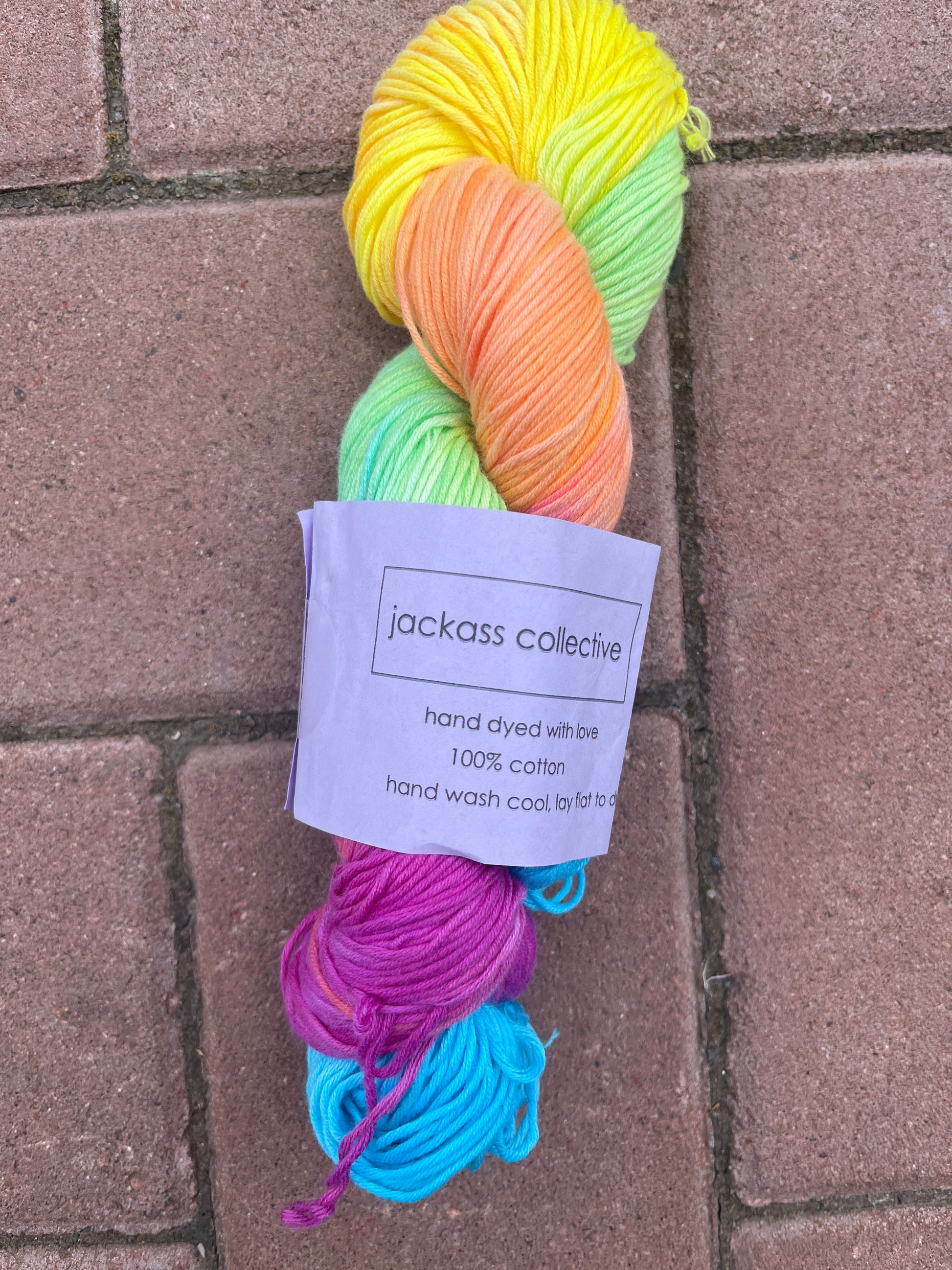 The symphony of pink yarn is hand dyed with love and made from 100% cotton.