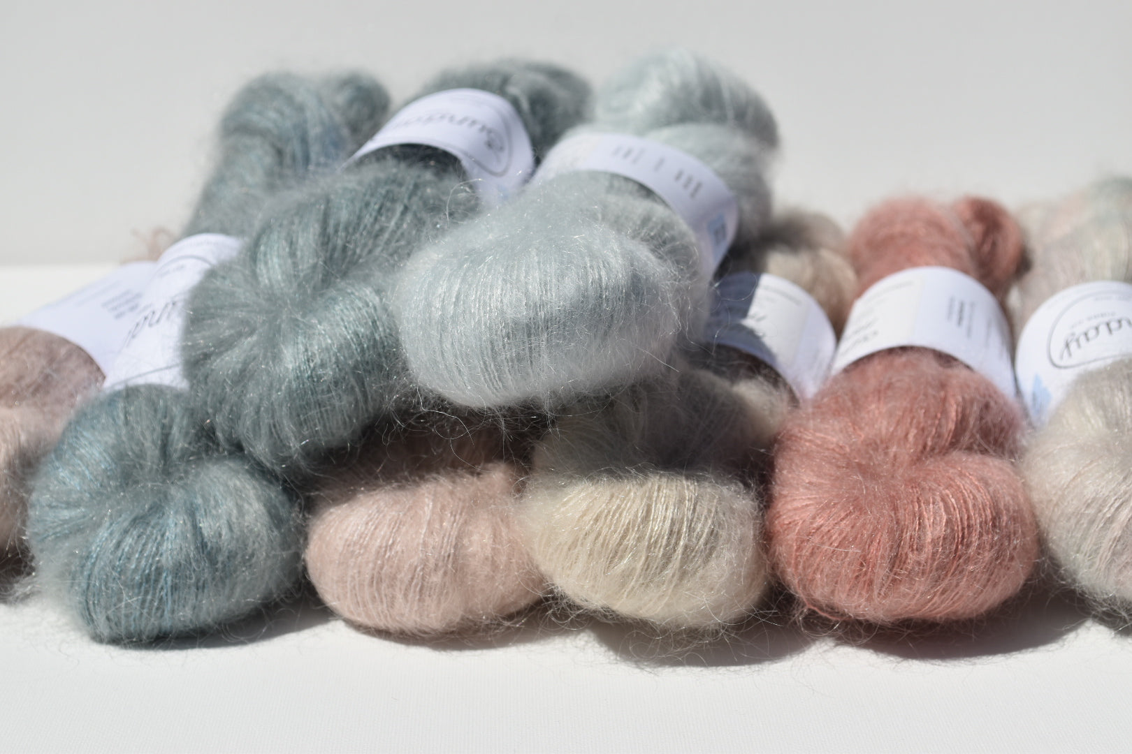 An airy, light halo that provides a gentle cloud of colour - beautiful on its own or held double-strand. Mohair possesses great strength and has about twice the warmth of wool, without the weight.