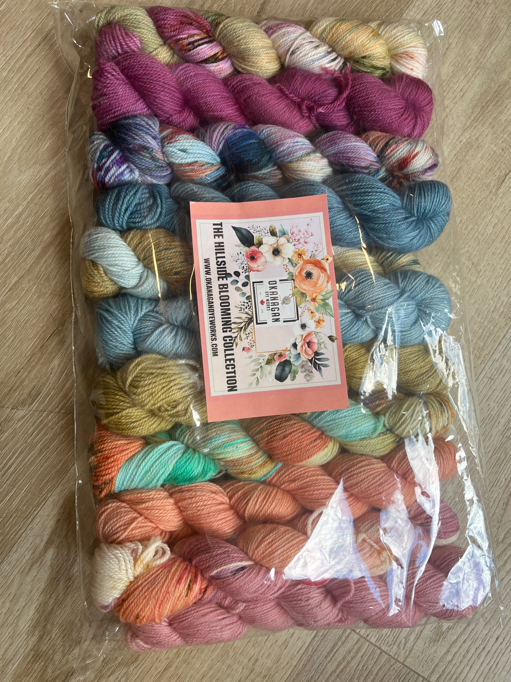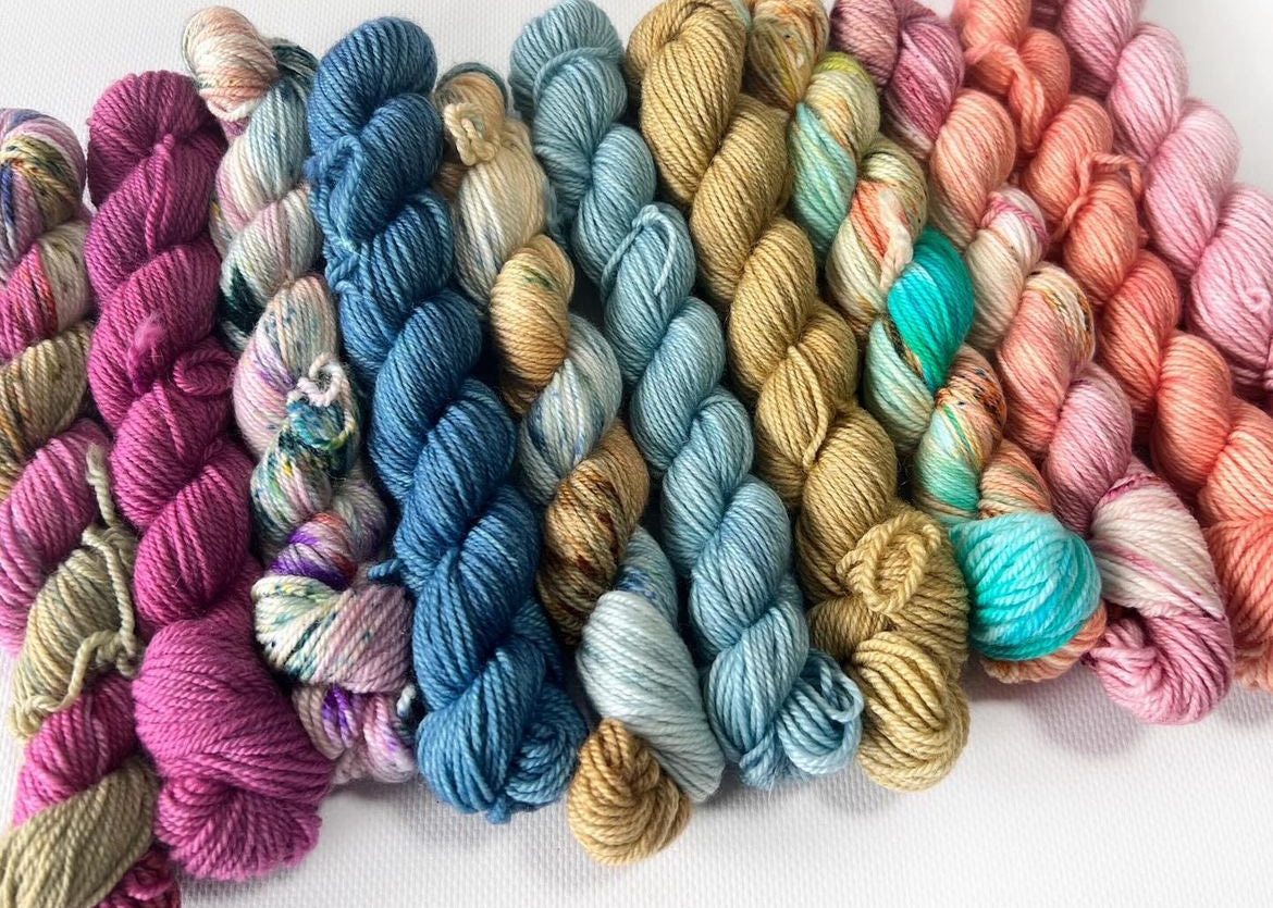 This magical fade set of minis is 10 minis, totalling 1012 yards, perfect for sweaters, blankets and shawls! Dyed in Vernon, BC!