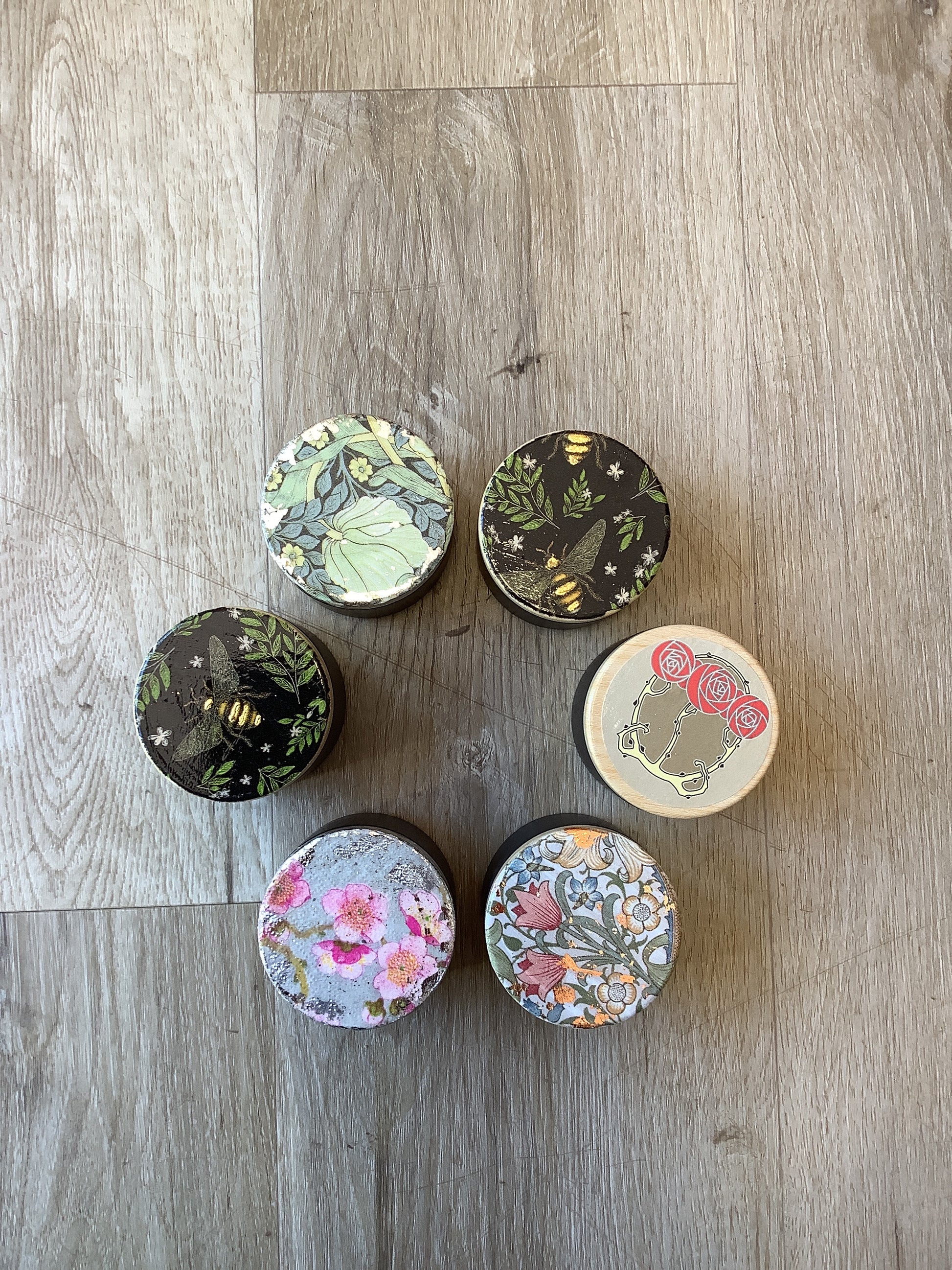 These Stitch Holder Tins are handmade with delicate floral designs, adding a touch of charm to your craft collection. Made from high-quality materials, each tin is unique with a random print, making it a one-of-a-kind addition to your sewing accessories. Keep your stitch holders organized and easily accessible with these beautiful and functional tins.