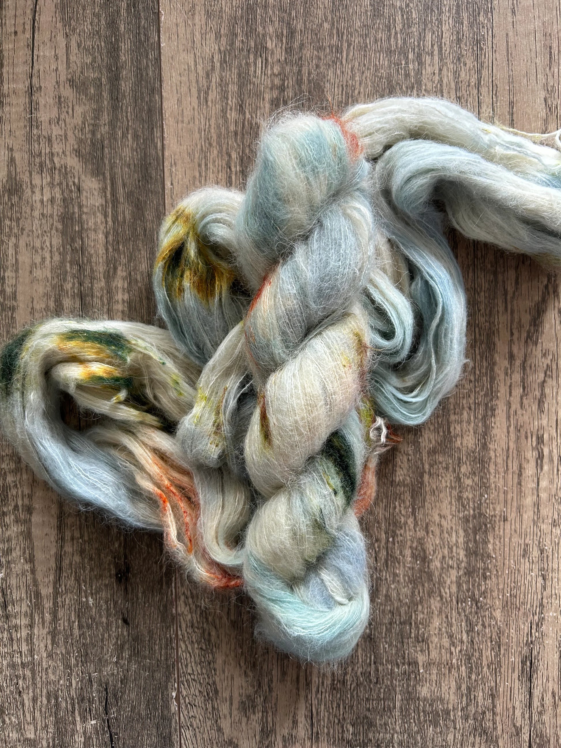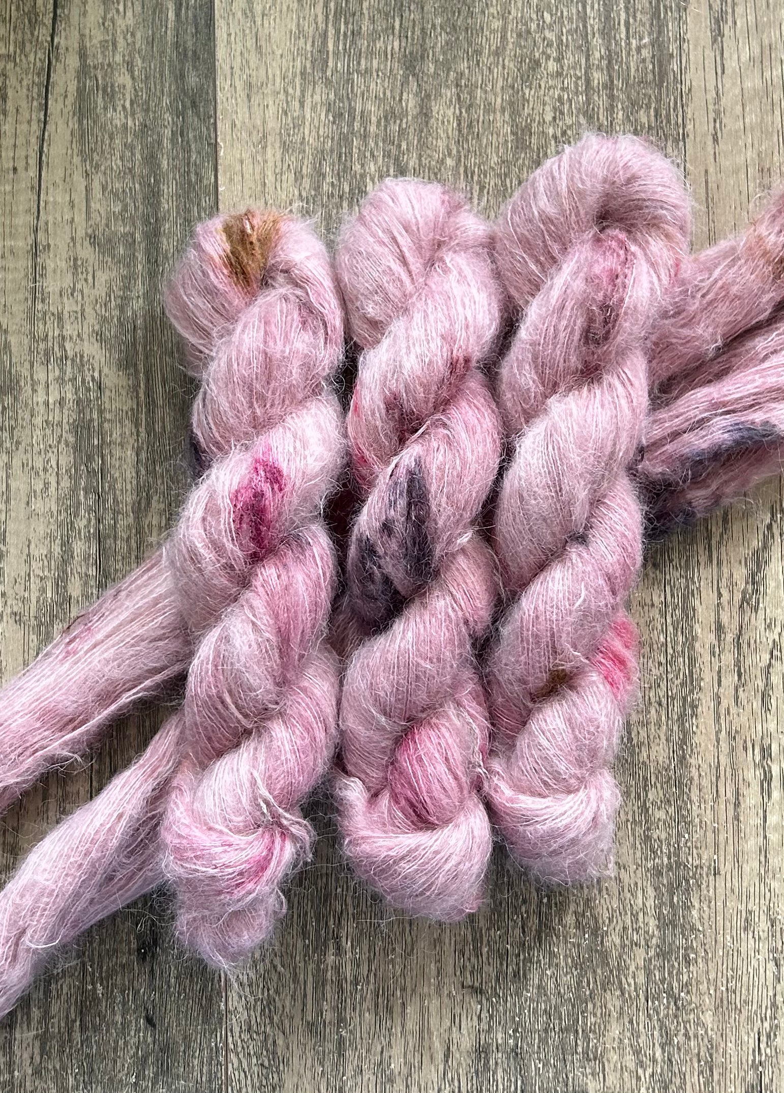Each skein has approximately 420 meters (459 y) and is a soft and fuzzy alternative to Mohair that doesn't seem to be as itchy.