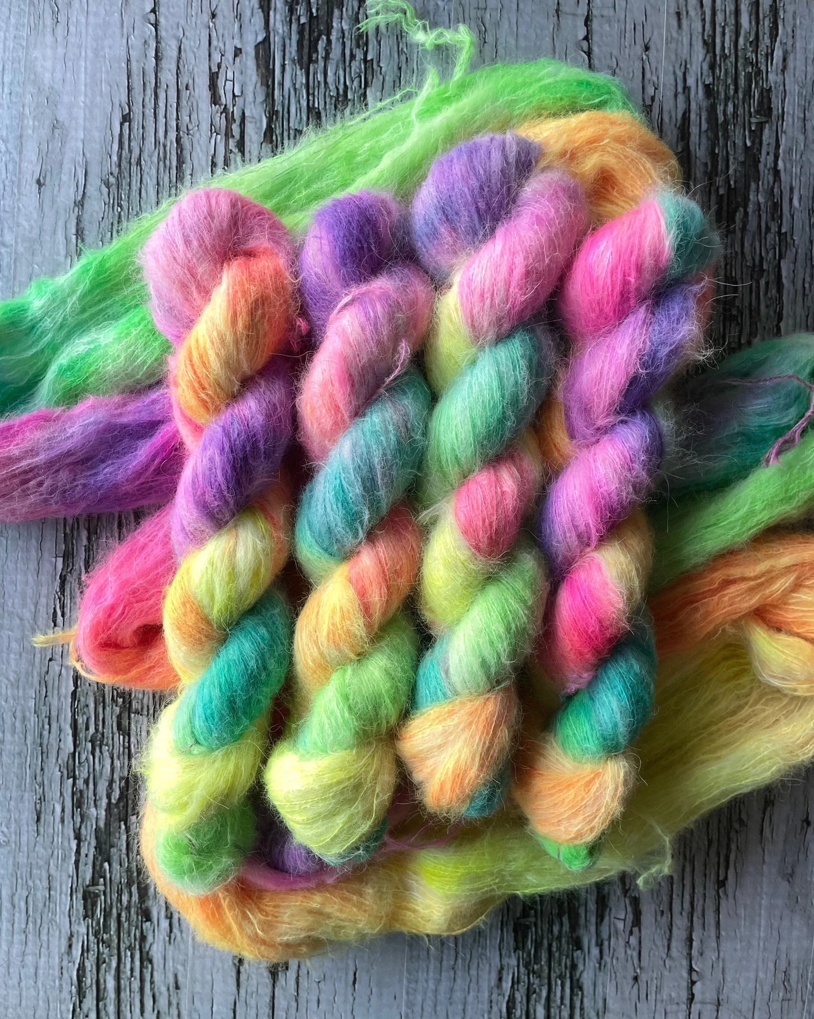 Each skein is hand-dyed with care and stored in my smoke-free and pet-friendly home (although the dog isn’t welcome in my dye dungeon!).