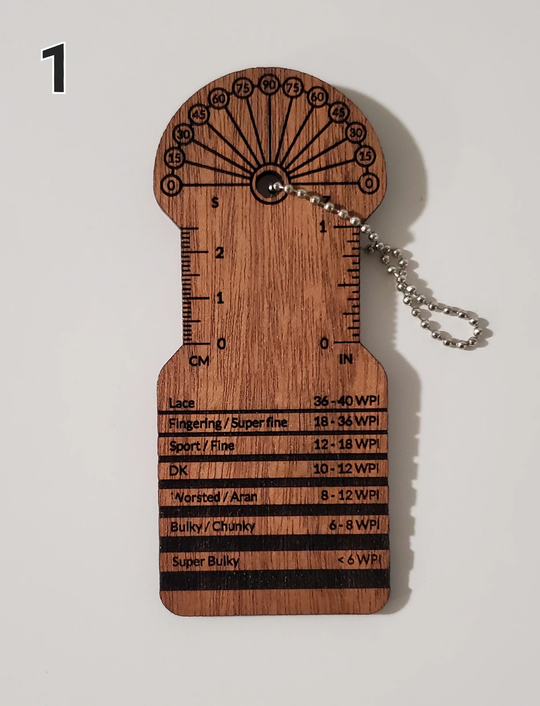 Laser cut and engraved, available in 2 wood varieties. Includes WPI guide, space for actual wrapping or measuring twist per inch (TPI) and a twist Angle guide for consistent plying and twist control.